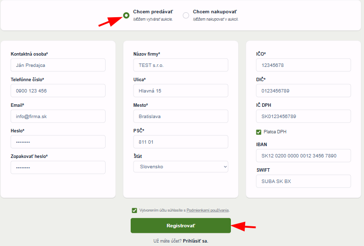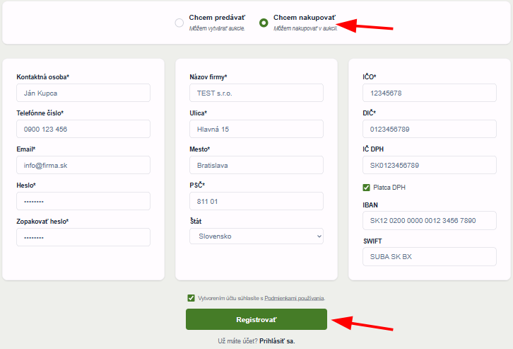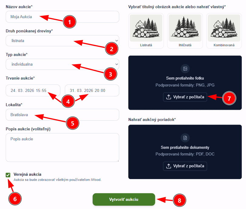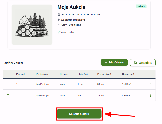 Tip: Pred spustením aukcie vždy skontrolujte všetky údaje.