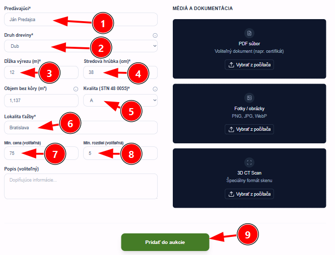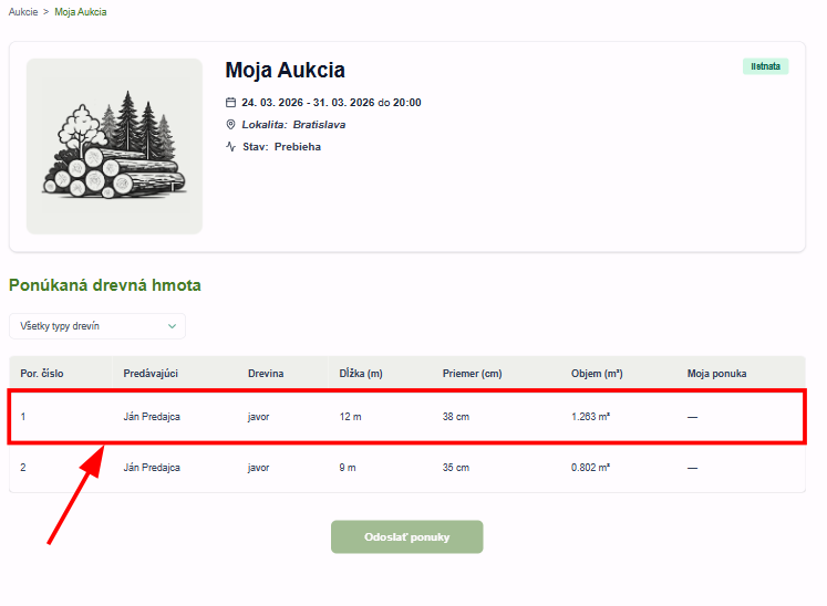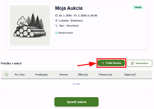 Tip: Pre hromadné aukcie zadáte celý objem kopy dreva naraz.